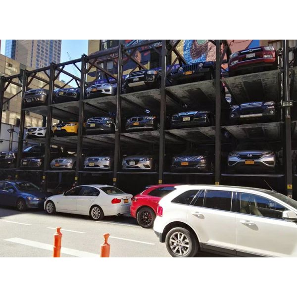 As the name implies through the lifting of a number of carriage pallet to access the vehicle.This kind of three-dimensional parking garage can be built up to four storeys with three car carrying boards.The biggest characteristic is to need manual operation, take the car above, the car below need to drive away first.This 4-floor simple lifting stereo garage exported to the United States is a simple, effective, efficient and safe parking solution driven by hydraulic system and wire rope.With safety and anti-falling devices, columns can be shared to reduce construction costs.